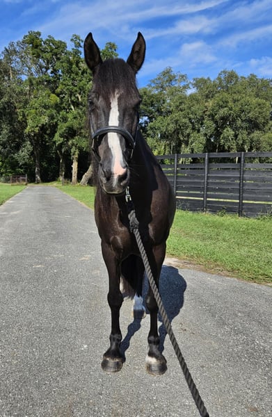 ONLINE AUCTION Place your bids at www.PlatinumEquineAuction.com Starting Bid $3500 Auction ends October 20th, 2024 Need a new saddle? Check out White Rock Saddles on our website or Facebook! 50% of Cupid’s sale price will be donated to Tomorrow’s Equestrian Center, a local nonprofit therapeutic riding center Introducing Cupid! A stunning 14.3H, 14 year old, black gelding with a long, flowing mane and tail. While he looks like a small Friesian, Cupid DNA tests as Caspian x Garrano x Campolina…three rare breeds! Cupid rides english and loves to jump. He has been ridden by experienced kids and adults schooling ground poles to 2’3″. While he is not for a beginner or timid rider, Cupid would be perfect for a confident, advanced rider that wants a gorgeous smaller horse for jumping. Cupid is a smooth ride with a comfortable easy jump. Sensitive to the aids and rides off of the seat. Cupid is a barefoot easy keeper and is up-to-date on shots, Coggins, deworming, floating, sheath cleaning, and hoof trimming. He is located in Ocala, Florida. We can help arrange shipping anywhere in the US. Please call Show Me Sport Horses Rachel at 352-467-5695 with any questions about Cupid. Located in Ocala, FL. ONLINE AUCTION Place your bids at www.PlatinumEquineAuction.com Starting Bid $3500 Auction ends October 20th, 2024 Need a new saddle? Check out White Rock Saddles on our website or Facebook!