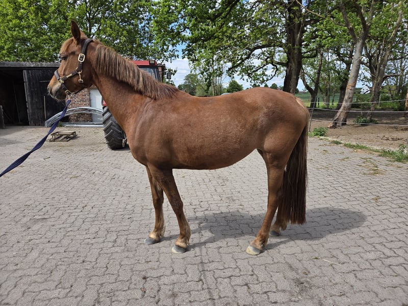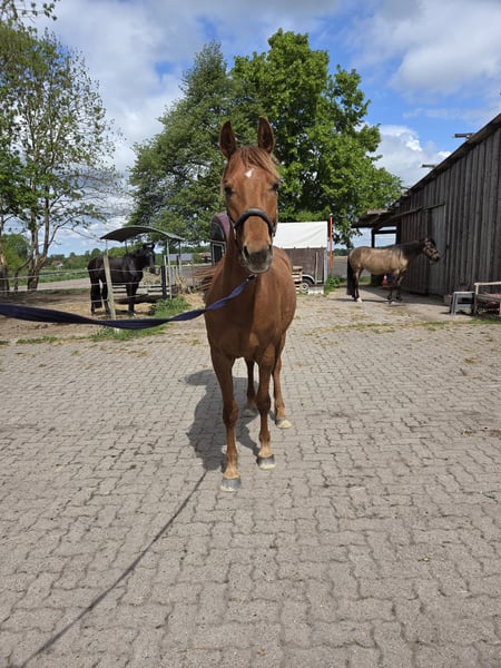 Hiermit verkaufe ich meine Stute Verassina, genannt Sternchen. Sie ist seit ca. Einem Jahr unter dem Sattel, hatte über den Sommer aber 2-3 Monate Pause und wird jetzt seit knapp 2 Monaten wieder regelmäßig gearbeitet. Sie läuft in den 3 GGA auf dem Platz und im Schritt und Trab im Gelände mit Begleitpferd. Auch kleine Sprünge haben wir schon gemacht, hier ist sie mit Freude dabei. Aufgrund ihres Alters ist sie nicht für reine Anfänger geeignet, da sie einfach noch weitere Ausbildung benötigt. Sie steht im Offenstall mit 24/7 Heu und im Sommer 24/7 Gras. Sie ist rangniedrig und hat sich bisher bei mir immer untergeordnet. Sie ist Turniermäßig geimpft und regelmäßig entwurmt. Bei weiteren Fragen gerne melden.