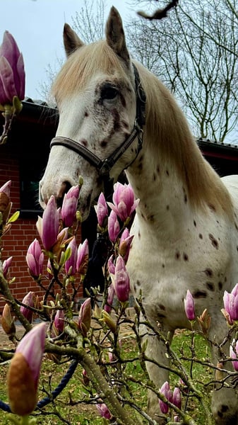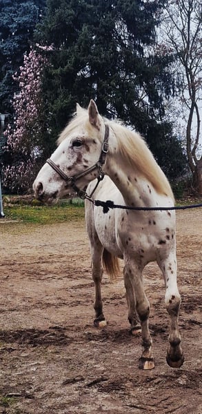 Nathan z Kronpletu na sprzedaż! Oryginalny ogier Knabstrupper bez krwi obcej Urodzi się w maju i będzie miał 3 lata. Obecnie mierzy 157 cm w kłębie. Nathan jest bardzo przywiązany do ludzi, inteligentny i chętny do współpracy, pewny siebie, opanowany, ale także wrażliwy i delikatny w obsłudze. Podczas kłusowania na aukcji oceniono go na 8, co świadczy o jego wysokiej jakości. To marzenie każdego jeźdźca, który szuka prawdziwego partnera na całe życie i wyjątkowego skarbu. Zarówno do hodowli, ponieważ jest wpisany do Księgi Narodowej Knabstrupper i ma 10 kryć, jak i do jazdy. Widzę go raczej w stylu barokowym, akademickim lub w working equitation. Idealny koń w wymarzonych warunkach i w świetnej cenie, ponieważ mam dwa ogiery, a jeden mi wystarcza.