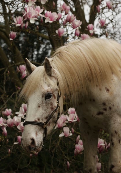 Nathan af Kronplet for Sale! Original Knabstrupper stallion with no foreign bloodlines. He will be three years old in May. Currently measured at 15.7 hh. Nathan is very people-oriented, intelligent, and eager to please. He is confident, calm, yet also sensitive and delicate in handling. He was awarded an 8 at his licensing, which speaks to his quality. A dream for any rider seeking a true partner for life and a special gem. Price on request. Pictures by Marianne Schwöbel.