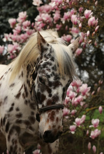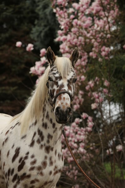 For sale: an impressive Knabstrupper mare, born in 2022. This elegant Baroque mare captivates with her distinctive tiger-stripe coat, which immediately catches the eye of any horse enthusiast. Standing at 15.5 hands, she combines the classic Knabstrupper aesthetics with a harmonious, well-proportioned physique. Her Baroque conformation gives her a unique presence and makes her a true eye-catcher. She is familiar with handling, groundwork, free movement, has had a saddle on before, and is accustomed to a bridle; otherwise, she is untrained. This Knabstrupper mare offers promising potential for breeding and more. If interested, I am happy to provide further information and arrange a viewing.
