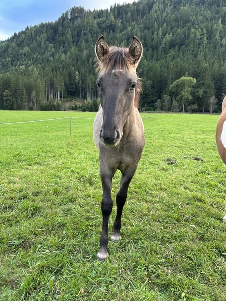 verkaufe mein im März 2025 geborenes Hengstfohlen. Tabaluga ist ein Konik/Haflingermix und wird ca. 140cm groß werden. Er kennt das Fohlen-ABC und ist sehr neugierig und verschmust. Mutter und Vater stehen bei mir am Hof. Der Kleine ist bereits abgesetzt und kann ab sofort ausziehen oder zur weiteren Aufzucht bleiben. Preis verhandelbar. Transport auf Anfrage