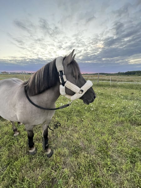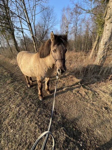 With a heavy heart, I have to sell my Polish Konik. His name is Tomi, he is a 10-year-old gelding, measuring about 137-138 cm at the withers. Tomi has a problem with obesity and needs a lot of exercise. With his calm demeanor and experience, he is perfect for children in a riding school. He used to participate in recreational riding and hippotherapy. He can go out on trails alone or with other horses. He is bomb-proof and is not scared of traffic or wild animals. He has been trained a bit using natural methods, so he knows the basics. He can walk on a lead. He will walk alongside a person and stop in line with them. He walks well on a lead and responds to voice commands, but there are days when he doesn’t care about anything at all. Last year, he pulled me on a sled, so I think he would have no problem accepting a cart. The boy is regularly vaccinated, dewormed, and shod. He has never had laminitis. We also conducted tests for insulin resistance, which came back negative. I also have a good saddle with a saddle pad for him for 450 PLN. I can send videos of riding and more information via private message. Please write to me.