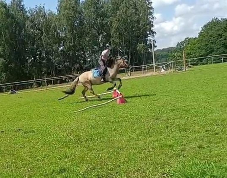 Konikwallach mit Springtalent - perfekt für Kinder! Fast 5 j.a ca. 1,40m Kleine Turniere geeignet Kinderlieb Schön angeritten und Gelände sicher. Mit Vollabstammung, Ohne Unarten Top Gesund Offenstall geeignet Standort nähe Görlitz Videos vorhanden. Transport möglich