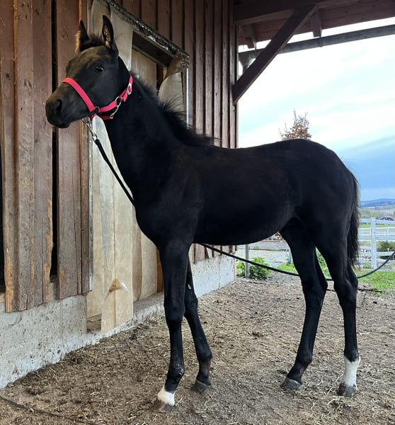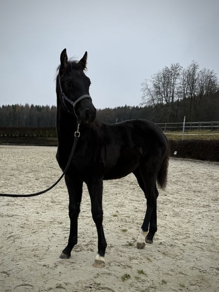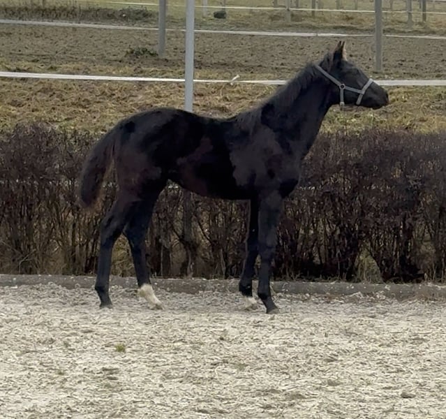 Zum Verkauf steht das vielversprechende Rapp-Hengstfohlen „VALENTINO VR 46“ mit interessanter Abstammung und hervorragender Perspektive für den gehobenen Freizeit- und Dressursport. Name: Valentino VR 46 * 12.06.2025 🖤 Rappe Abstammung: D‘Agostini S x Don Juan De Hus Valentino überzeugt durch sein zugängliches, selbstbewusstes und menschenbezogenes Wesen. Er zeigt sich altersgemäß neugierig, freundlich und im Umgang sehr angenehm. Er präsentiert sich sehr bewegungsstark, ist langbeinig, mit einer äußerst aktiven und kraftvollen Hinterhand, guter Balance und viel natürlicher Elastizität. Damit bringt er tolle Voraussetzungen für die spätere Ausbildung im Dressursport mit, eignet sich aber ebenso hervorragend für ambitionierte Freizeitreiter. Ein typvoller junger Rappe mit Charme, Qualität und Entwicklungspotenzial.