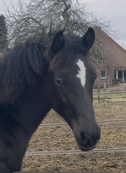 Zu verkaufen: Viano TD, ein echter Showstar mit schickem schwarzem Fell und einem weißen Stern auf der Stirn. Geboren am 20. Juni 2025, ist dieses Fohlen etwas für Kenner, die Geschmeidigkeit, Korrektheit und eine erstklassige Abstammung suchen. Viano TD vereint das Beste der niederländischen und deutschen Dressurpferdezucht: **Vater Lowlands (Millennium x Donnerhall):** Lowlands schrieb Geschichte mit einer 9,5 für den Schritt im Leistungsprüfungs‑Test und erhielt eine 9 für seine Rittigkeit und Einstellung. Er vererbt seine Kraft, Balance und Rittigkeit zuverlässig an seine Nachkommen. 2023 gewann Dinja van Liere mit Lowlands OLD den Hengstenwettbewerb in Den Bosch und die Kombination wurde Vize‑Meister in der Klasse ZZ‑schwer bei den niederländischen Meisterschaften. **Mutter One in a Million BL (v. Just Wimphof) – ELITE:** Eine sehr ansprechende Stute, die ihre Qualität im IBOP‑Test des KWPN unter Beweis stellte. Die Jury beschrieb sie als eine Stute, die sehr gute Übergänge zeigt und sich auch in den Gangarten leicht umschalten lässt, wobei sie schön auf das Hinterbein kommt. Der Schritt ist rein mit gutem Körpergebrauch. Der Trab ist leichtfüßig, schön rein und mit viel Geschmeidigkeit. Auch im Galopp zeigt sie viel Losgelassenheit. Sie erhielt beeindruckende 8,5 für die Veranlagung als Dressurpferd. Viano TD macht seiner Abstammung alle Ehre. Er ist ein echter Showstar mit viel Ausstrahlung. Er verfügt über einen auffallend guten, langen Schritt mit viel Raum und Takt. Im Trab zeigt er viel Geschmeidigkeit und ein kräftiges Hinterbein. Offenbar hat er auch den herrlichen Galopp seiner Mutter mit viel Balance geerbt. Viano TD hat sehr saubere, korrekte Beine und erhielt mehrfach Komplimente vom Hufschmied für seine schönen, korrekten Hufe. Er wird voraussichtlich auf ein Stockmaß von etwa **1,75 m** wachsen. Viano TD wird täglich von Hand geführt, ist brav beim Hufschmied und regelmäßig geimpft sowie entwurmt. Suchen Sie ein hochwertiges Fohlen mit einem sehr soliden Fundament und der Geschmeidigkeit für die höheren Aufgaben? Dann ist Viano TD eine Besichtigung mehr als wert.