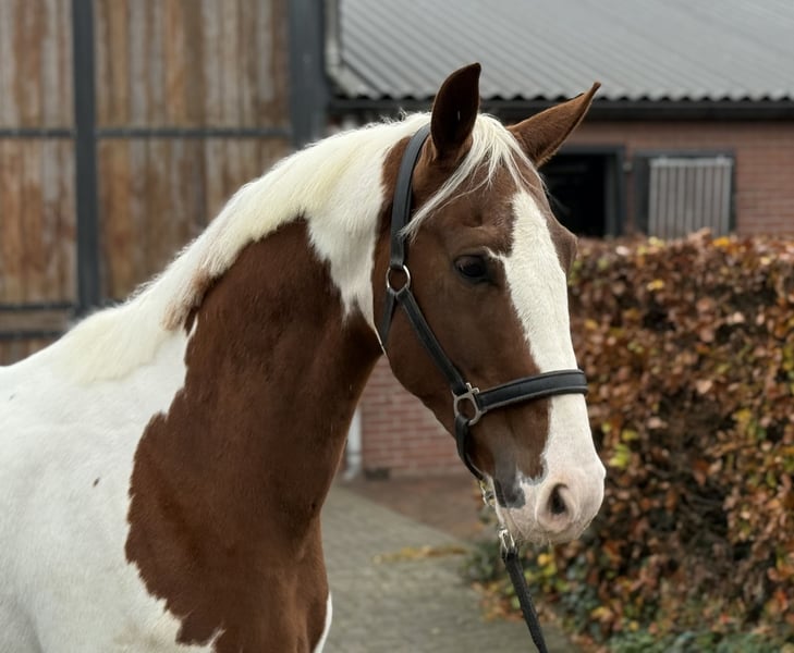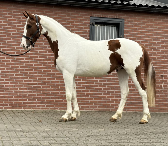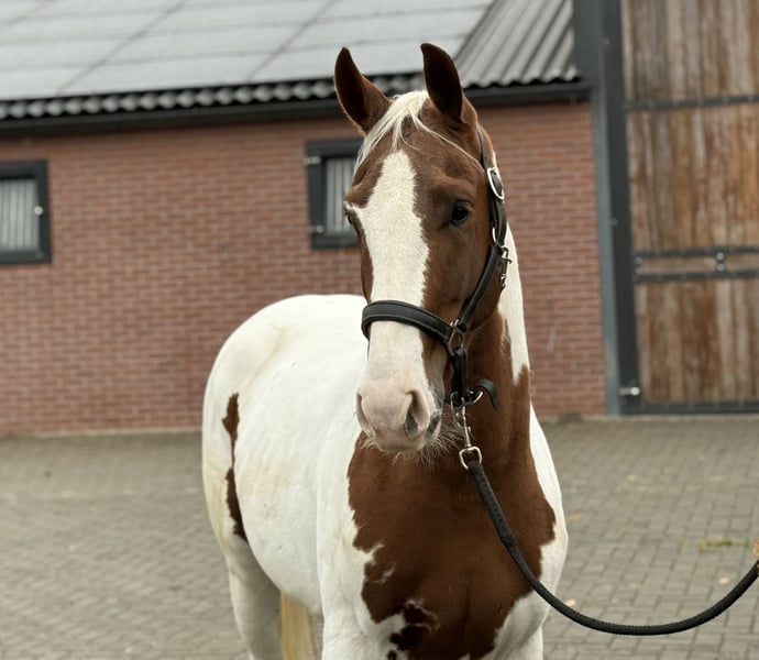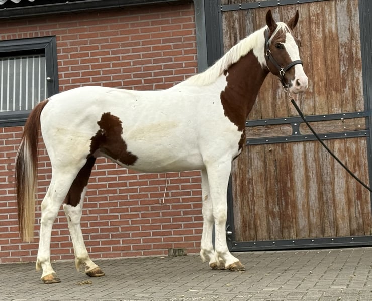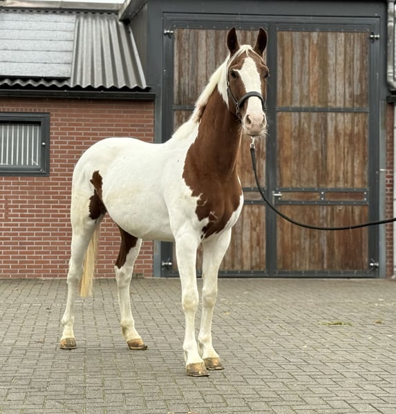 Gerne stellen wir Ihnen Sepp van de Lisdodde vor. Sepp ist ein auffallend schöner Hengst, nicht nur wegen seiner beeindruckenden Scheckung in Plattenfarbe, sondern auch aufgrund seines modernen Typs und Erscheinungsbildes. Sein Vater ist der bunte Hengst Indi, seine Mutter stammt von der bekannten Top-Dressurvererberin Negro ab. Dies zeigt sich auch in seinen Bewegungen: Sepp zeigt eine besonders schöne Haltung im Trab und Galopp. Er bewegt sich mit starkem Hinterbein und bergauf, zeigt viel Raumgriff und eine gute Beintechnik. Sepp ist noch nicht trainiert und unbeleert, jedoch ist er ehrlich und umgänglich im Umgang. Bei Interesse bitten wir um Anruf oder WhatsApp, Telefonnummer: +31643197337. Ein Video kann auf Wunsch per WhatsApp angefragt werden.