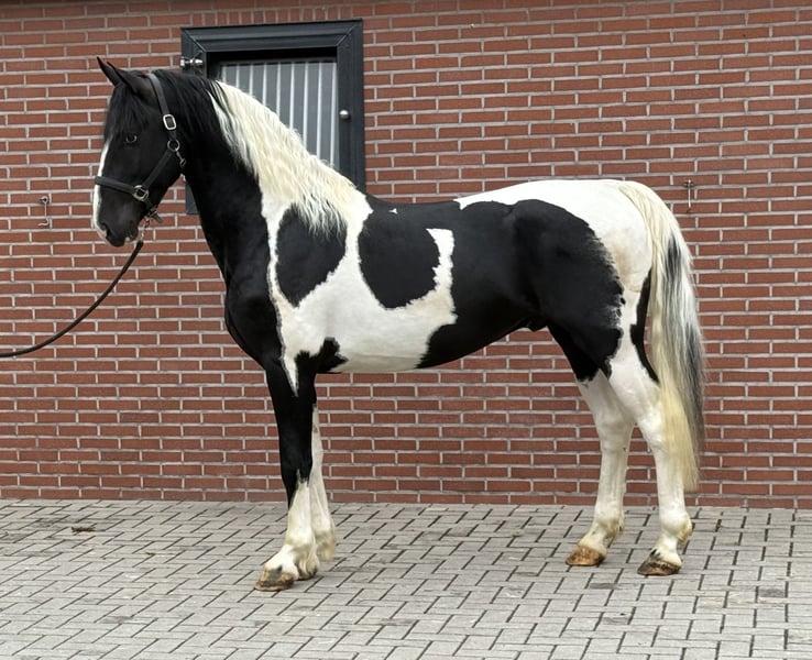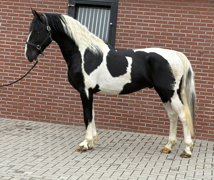 Strikingly beautiful 3.5-year-old black and white stallion. He is super beautiful in his piebald coloring. He is a true showstopper. With a lot of presence and a fantastic leg technique, he moves through the arena. He has full KWPN papers. If interested, please call or message: +31643197337