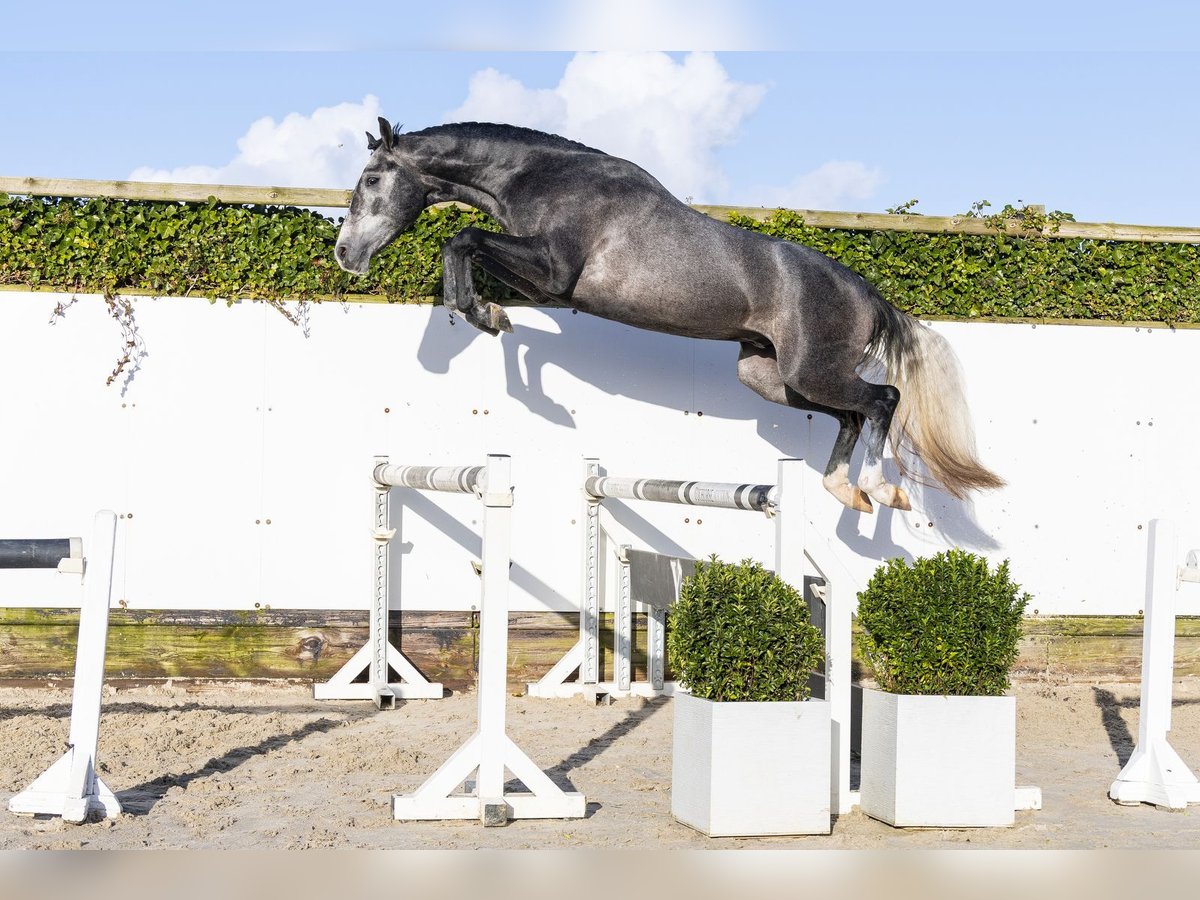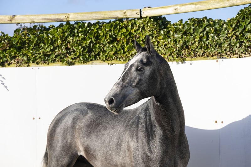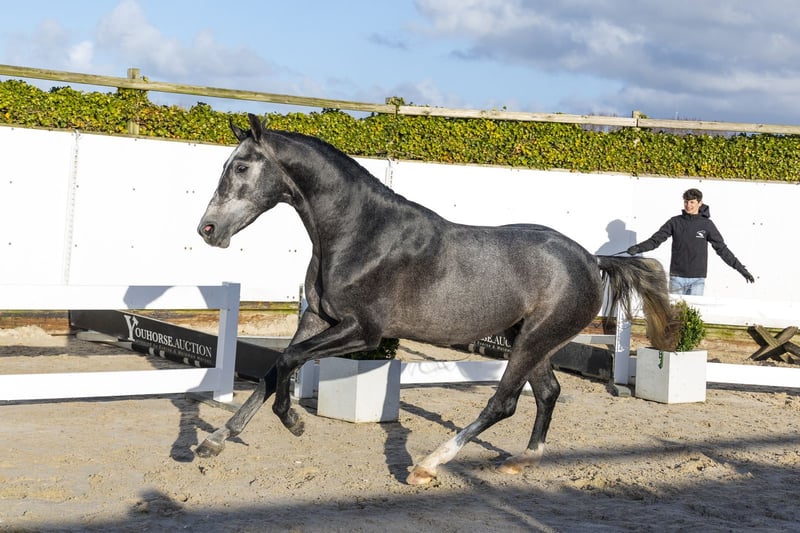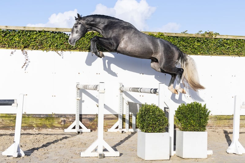 The Global’s Boy is a horse with a striking presence and an appealing conformation. A beautiful grey with a well-constructed build, he moves very lightly and effortlessly, possesses easy power, and shows caution over fences. An impressive horse that performs all tasks with great quality and ease. He features a large, uphill canter and sits comfortably on his hind legs. He can shift his body well and displays a lot of suppleness and balance. A very promising sporthorse with a bright future ahead. His sire, Dallas VDL, competed at 1.60m Grand Prix level and comes from the strong line of Douglas x Heartbreaker. He has produced several international 1.60m show jumpers such as Inpulss, Irving VG, and Garadice Shore. A stallion that passes on power, attitude, and quality. His dam, O-Global’s, is a daughter of Just One and hails from a versatile sport family with both jumping and dressage genes. The dam line has produced multiple sport horses and approved stallions: - Audi’s Amaja – 1.35m - Edam – approved stallion, 1.35m - Fernando J – 1.35m - Casan J – 1.30m - Luta – 1.30m Additionally, several approved stallions and sport horses in both jumping and dressage are found along this line. A versatile and proven dam line with sport genes and the right attitude.