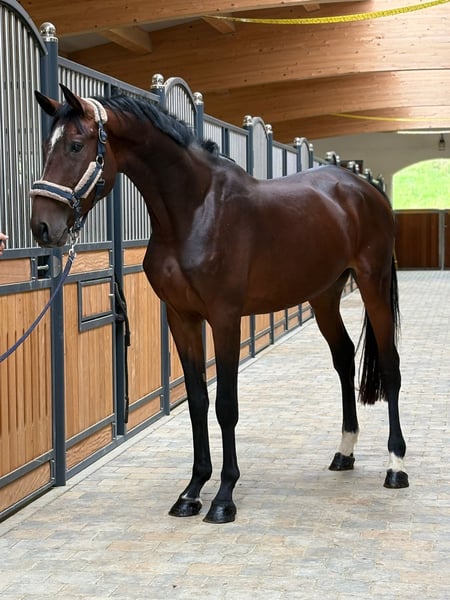 For sale is El Chapo, a typy stallion with a height of 168 cm. He is sired by Eldorado van de Zeshoek and brings modern show jumping bloodlines. El Chapo is well-behaved, well-trained, and is familiar with lunging. He already shows a lot of ability and overview in free jumping. He can be gelded upon request. Starting under saddle is also possible for an additional fee. An exciting young sport horse with potential. Further information available upon request. A veterinary examination can be commissioned by the buyer.