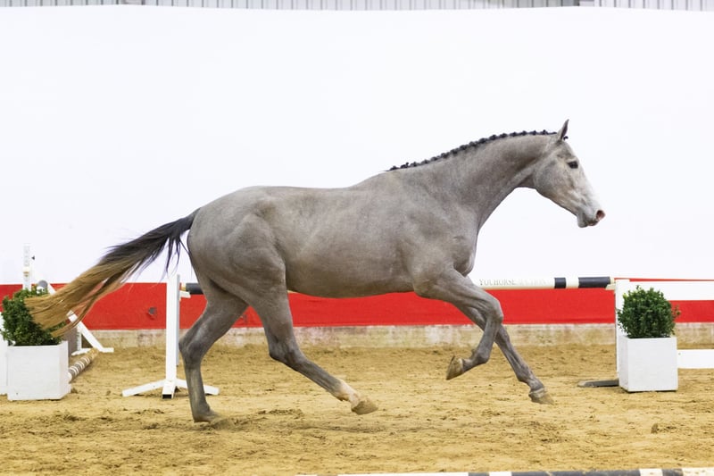 https://youhorse.auction/en/auction/Texas-DALLAS-VDL-x-CORLAND Big-framed grey with calm attitude and correct technique Texas is a big-framed grey with a calm temperament. He jumps with a nice technique, shows quality and does everything with ease. A pleasant amateur horse that keeps overview over the fences and works in a straightforward way. His movement and jumping style make him suitable for riders looking for quality combined with rideability. Sire Dallas VDL (Douglas x Heartbreaker) competed internationally at 1.60m level and is approved with KWPN, ZANG, SF, Hannover and OS. Dallas VDL is known for passing on scope, canter and attitude, with multiple offspring competing at 1.50–1.60m level. Damline The dam is Atersina (Corland), descending from an exceptionally strong Dutch performance family. Corlandcompeted at 1.60m level and is a proven sire of scope and technique. This damline has produced numerous international showjumpers and approved stallions, including: – Alpha VDL (Corland), 1.60m – Rocksina (Corland), 1.60m – Guinness 107 (Corland), 1.50m – Light-Kohinoor (Cohinoor VDL), 1.55m, approved – Eleganto (Indoctro), 1.55m – Innocence (Zirocco Blue VDL), 1.55m – Cor de Pomme (Corland), 1.45m, approved – Multiple horses competing at 1.30–1.45m level Further back, the pedigree shows consistent sport from 1.30m up to 1.60m, with influential sires such as Darco, Heartbreaker, Cor de la Bryère, Indoctro, Ahorn, Farn and Nimmerdor. A deep, proven performance family.