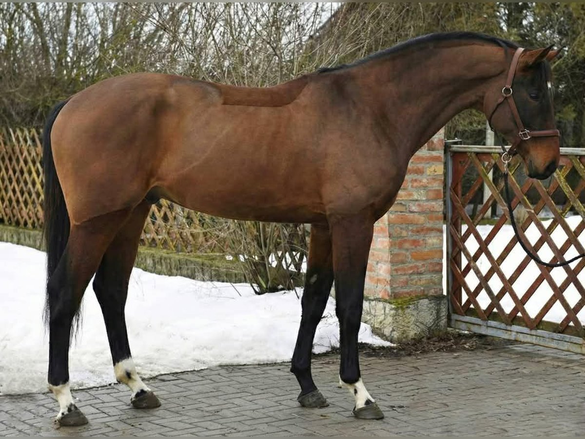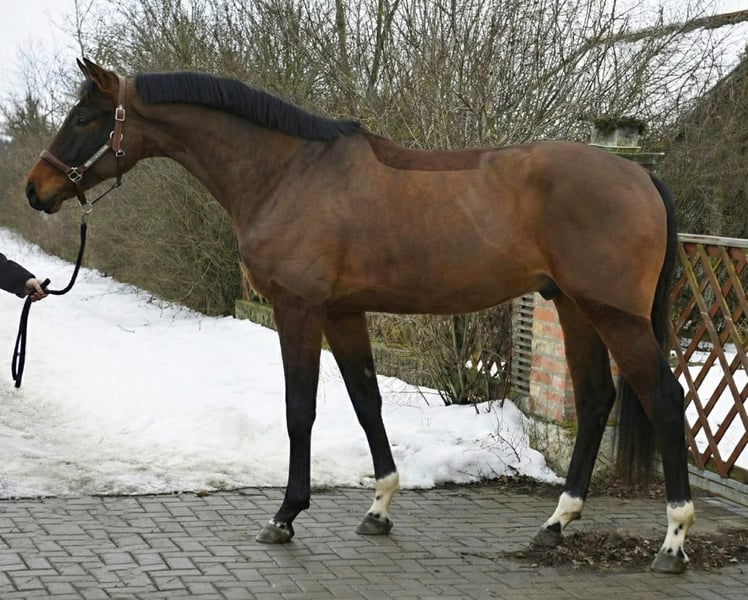 Attractive 4‑year‑old stallion, standing approx. 169 cm, with a modern sport horse type and harmonious conformation. Well-developed for his age, showing a strong topline, good shoulder, and powerful hindquarters. Elegant bay with correct legs and balanced proportions. This stallion presents a calm, attentive expression and behaves well in-hand. Nicely put together with a natural presence and athletic frame, making him a promising young sport horse prospect. Suitable for further development in a professional or ambitious program. Serious inquiries only. More photos, videos, and pedigree information available upon request.