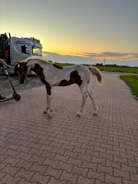 Ein einzigartiges KWPN-Pinto-Hengstfohlen. Valence geboren am 26. April 2025. Urgent x Oliver Paola ist die Mutter. Eine sehr brave Stute. Angelernt für die Kutsche. Oliver ist homozygot. (Nachkommen immer gescheckt) Valence hat eine kräftig gebaute Vorderhand. Er erhält viel Aufmerksamkeit, kennt das Halfter und auch das Waschen. Valence ist für jeden Besitzer geeignet, sowohl für die Freizeit als auch für die Zucht. Valence ist gechipt und entwurmt. Bei ernsthaftem Interesse bitte anrufen oder eine Nachricht senden. (Keine unseriösen Angebote) Nicht am Sonntag.