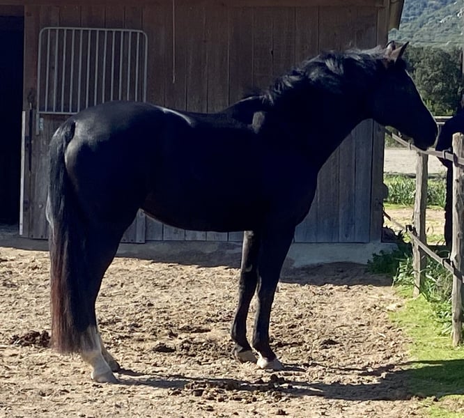 Dringend zum Verkauf: Wunderschöne schwarze KWPN-Stute, steril, 10 Jahre alt, gesund, 1,72 m groß, alle Impfungen aktuell, liebenswert, leicht zu handhaben. Hat noch nicht gedeckt, zeigt aber leichte Läufigkeit. Standort: Avignon.