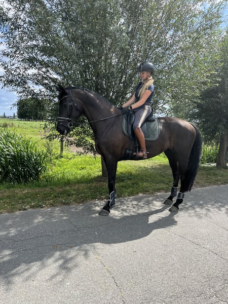 This beautiful black-brown mare stands at 171 cm and is PSG classified. Calm under saddle, easy-going in the stable, and social with other horses, she is the perfect combination of talent, charm, and reliability. Enjoy dressage, a light jump, or peaceful forest rides with this delightful partner.