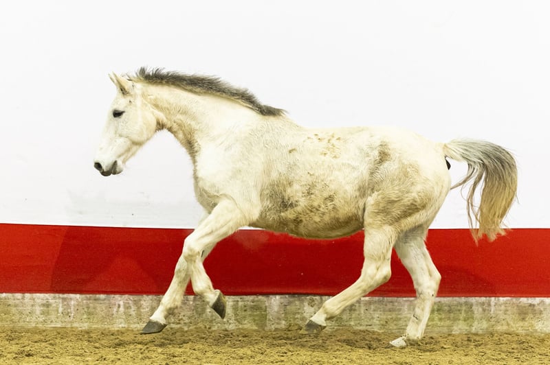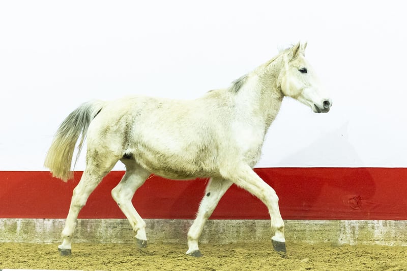 This mare is offered as a broodmare and is in foal to Vintage. A foal is expected this year – you see one, but you buy two. A very light-footed mare, a true Cardento type. Beautiful in conformation, with an easy canter, good balance and quick reflexes off the ground. She is careful over the fence and shows the typical mindset and technique we know from this line.