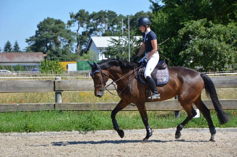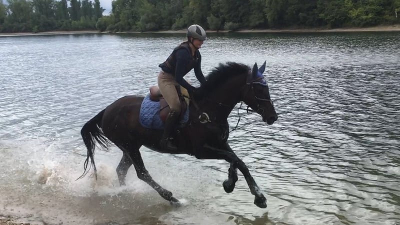 Beautiful KWPN Mare – Versatile Show Jumping Talent and Reliable Leisure Partner Our dark bay KWPN mare (born 2012, height 174 cm) by Quindam de Revel/Navantus combines sporting ambition with a loving nature. She is not only an exceptional jumping talent but also a well-built, fearless partner for leisure riding and competitions. We have regularly ridden her in dressage as well, so she has a solid foundation and a pleasing dressage basic training. At competitions, she is very gentle and reliable; in the terrain, she is well-behaved and even enjoys a ride through water. She is still unspoiled, possesses potential for further sporting success, and is a true all-rounder for ambitious riders seeking both competition and leisure enjoyment. We look forward to your inquiry and are available for viewing and test rides at any time! Price includes a fitted Prestige jumping saddle and bridle.