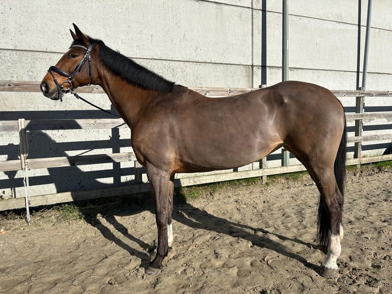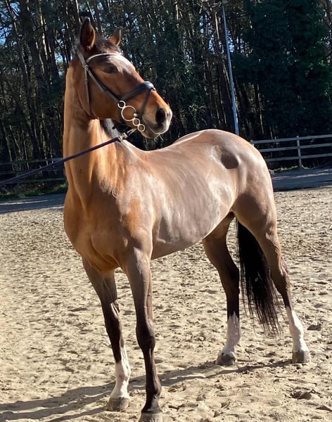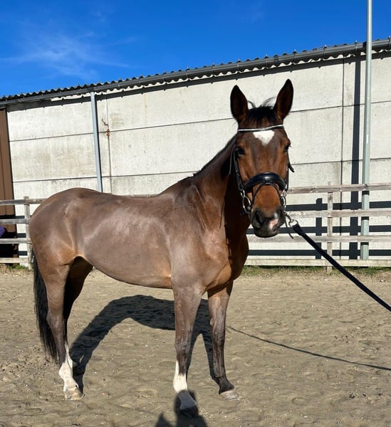 Mit schwerem Herzen bieten wir unsere liebevolle 14-jährige KWPN-Stute zum Verkauf an. Diese energiegeladene Allrounderin mit einer Schulterhöhe von 1,63 m ist eine arbeitswillige und begeisterungsfähige Dame, die gerne für ihre Reiterin arbeitet. Sie verfügt über eine schöne Abstammung als Enkelin von G. Ramiro Z und Indoctro, was sich deutlich in ihren Springqualitäten widerspiegelt. Sie ist nicht schreckhaft, springt mit viel Einsatz und Energie. Bei ihrem vorherigen Besitzer absolvierte sie Parcours bis 1,10 m. Derzeit läuft sie mit ihrer aktuellen Reiterin 1,00 m und hat definitiv das Potenzial, höher zu springen. Zudem hat sie Erfahrung im Vielseitigkeitssport (nationale 1,00 m) und in der Dressur (Level B1). Sie besitzt eine gute Grundausbildung und arbeitet gerne. Sie ist weniger geeignet für einen Anfängerreiter und passt besser zu einem selbstsicheren, konsequenten Reiter, der ihre Energie in die richtigen Bahnen lenken kann. Eigenschaften: • Leicht auf den Anhänger zu laden • Brav beim Hufschmied (steht auf vier Eisen) • Einfach zu longieren • Genießt Weidegang Pflege: • Impfungen und Entwurmung auf dem neuesten Stand • Tierarztbesuch im Juli • Klinisch untersucht im Mai 2025 • Pass vorhanden Sie verdient ein echtes Fünf-Sterne-Heim mit ausreichend Weidegang, Aufmerksamkeit und einem Reiter, mit dem die Chemie stimmt. Der Verkauf erfolgt ausschließlich aufgrund des fehlenden Klicks zwischen Reiter und Pferd. Verkaufspreis: 11.000 € inklusive passendem Sattel. Videos sind auf Anfrage erhältlich. Bei ernsthaftem Interesse freuen wir uns auf Ihre Nachricht für weitere Informationen.