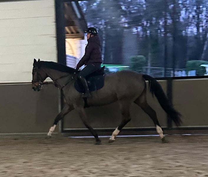 With a heavy heart, we are offering our lovely 14-year-old KWPN mare for sale. This energetic all-rounder, standing at 1.63 meters, is a willing and enthusiastic mare who enjoys working for her rider. She boasts a fine pedigree as the granddaughter of G.Ramiro Z and Indoctro, which is clearly reflected in her jumping abilities. She is not spooky, jumps with great commitment and energy. In her previous home, she jumped courses up to 1.10 meters. Currently, she jumps 1.00 meter with her current rider and certainly has the potential to go higher. Additionally, she has experience in eventing (national 1.00 meter) and in dressage (level B1). She has a solid foundation and works eagerly. She is less suitable for a beginner rider and would be better matched with a confident, consistent rider who can channel her energy effectively. Characteristics: • Easy to load onto the trailer • Gentle with the farrier (stands on four shoes) • Easy to longe • Enjoys turnout in the pasture Care: • Vaccinations and deworming up to date • Dentist visited in July • Clinically examined in May 2025 • Passport available She deserves a truly five-star home with ample turnout, attention, and a rider with whom she shares a good connection. The sale is solely due to the lack of that connection between rider and horse. Price: €11,000, including a suitable saddle. Videos available upon request. Serious inquiries are welcome to contact us for more information.