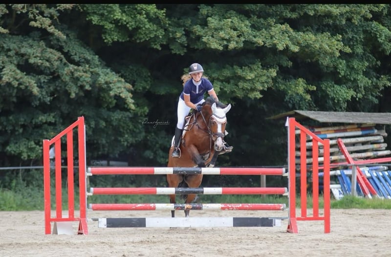 Onze lieve Ella mag iemand anders heel gelukkig maken. Ella wordt in augustus 15 jaar, ze heeft een mooie afstamming; Glasgow-w van het Merelsnest x Larino. Ella heeft in het verleden internationaal gesprongen, maar is nu meer toe aan een lager niveau. Wij zien haar het liefst bij iemand bij wie ze zeker nog lekker veel kan trainen, naar buiten gaat, bosritjes doet en natuurlijk heel veel liefde krijgt. Wij doen haar met veel verdriet weg omdat we een paard zoeken die nu wel hoger gaat in de sport. Ella is lief, sociaal, en werkt hard. Ze is verkeersmak, trailermak, bomproef en braaf op buitenrit (alleen en met andere paarden). Ze heeft wel een zekere ruiter nodig en genoeg beweging, dus absoluut geen beginner. Wij denken dat ze op 80/90 cm nog prima kan springen op concours.