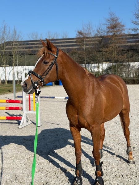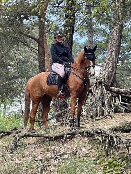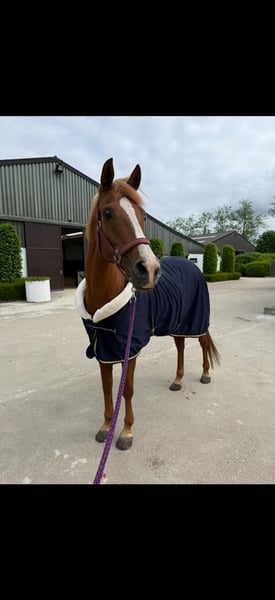 Camilia is een 17 jarige merrie van 1.55m en zeer mooi gebouwd. (47% arabisch bloed) Capaccio van Orchid's x Santana C Ze is een super braaf en makkelijk te rijden paardje. Ze kan een mooi beginnersproefje dressuur lopen en een sprongetje in de bak of op buitenrit vindt ze best fijn maar is niet geschikt voor springwedstrijden (blokkeert in de piste). Tijdens poetsen en opzadelen staat ze zo stil als een standbeeld en is heel veilig voor kinderen. Als ze een tijdje stilstaat is ze even braaf alsof je ze elke dag zou rijden. Op wandeling alleen of in groep is ze heel betrouwbaar. Camilia is geschikt voor kinderen of een beginnende en/of onervaren ruiter. Zeer braaf bij hoefsmid, dierenarts, braaf op trailer en op verplaatsing. Ze heeft een lichte vorm van astma maar met het juiste management is dit zeer goed onder controle (stal op vlas en voordroog of natter hooi) Wij geven haar dagelijks supplementen hiervoor omdat ze op een manege staat en er in de winter geen weidegang mogelijk is. Als ze in een buitenstal/schuilstal zou staan met veel weidegang (winter en zomer) zijn de supplementen waarschijnlijk niet meer nodig. Ze is volledig in orde met vaccinaties en ontworming Laatste tandartsbezoek was op 7 augustus 2025. Er is ook een zo goed als nieuw dressuurzadel te koop van het merk ERE plus. (aangekocht in juni 2023) nieuwprijs 4400€ -> vraagprijs 3000€