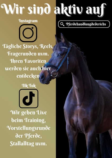Didi ist eine 2008 geborene, 160cm große Stute v. Tuschinski, Krack C, Pion x Casanovo, Rinaldo Absolutes Lehrpferd zum Wohlfühlen und zum direkt los reiten. Sehr gut ausgebildet, fein an den Hilfen aber nicht sensibel. Perfekt für den Widereinsteiger, Anfänger oder als Kinderlehrpferd. Ob für die Dressur, die ersten Turniere, oder um die Seele im Gelände baumeln zu lassen, sie ist die perfekte Partnerin. Auf Turnier immer weit oben mit dabei gewesen, hierbei auch unter Jugendlichen gelaufen. Absolut unerschrocken und in sich ruhend, einfach für jeden spass zu haben. Wurde von uns sogar schon mit Halsring im Gelände geritten, hier zeigt sie sich auch absolut cool und unerschrocken Ganz einfach dabei noch im Handling. Ein aktuelles Video ist auf unserer Instagram Seite -Pferdehandlung Dederichs- zu finden. AKU wurde im November/25 gemacht. Verpassen Sie nicht dieses absolute Traumpferd. Pferdehandlung Dederichs – Ihr Partner für den Pferdekauf Kontakt & Erreichbarkeit: Anfragen bitte ausschließlich telefonisch unter 0173/9792139 Montag – Freitag: 09:00 – 18:00 Uhr Samstag: 09:00 – 15:00 Uhr Sonntag: Ruhetag Folgen Sie uns auf Social Media! Erleben Sie unseren Alltag mit den Verkaufspferden auf Instagram, TikTok & Facebook unter Pferdehandlung Dederichs Rabatt: Bei sofortiger Mitnahme Ihres neuen Traumpferdes erhalten Sie zwischen 5 %– 10 % Rabatt Probereiten & Vorführen: • Probereiten: 30 € pro Pferd (max. 2 Reiter), Betrag wird beim Kauf angerechnet • Feiertage: Proberitt 50 € • Vorführung durch unsere Bereiter: 25 € pro Pferd (Vorreiten, Bodenarbeit etc.) Ankaufsuntersuchung & Transport: • Viele unserer Pferde besitzen bereits eine AKU • Sie können selbstverständlich Ihren eigenen Tierarzt mitbringen • Gerne organisieren wir eine Untersuchung • Wir unterstützen Sie auch gerne beim Transport ins neue Zuhause Weitere Verkaufspferde: In unserem Stall stehen weitere Verkaufspferde, die noch nicht online sind. Falls Ihr Traumpferd noch nicht dabei ist, zögern Sie nicht, uns zu kontaktieren. Wichtige Hinweise: • Stockmaß-Angaben sind geschätzt und nicht exakt nachgemessen • Alle Beschreibungen sind subjektive Einschätzungen des Verkäufers und keine zugesicherten Eigenschaften Weitere Informationen finden Sie unter: www.Pferdehandlung-Dederichs.de