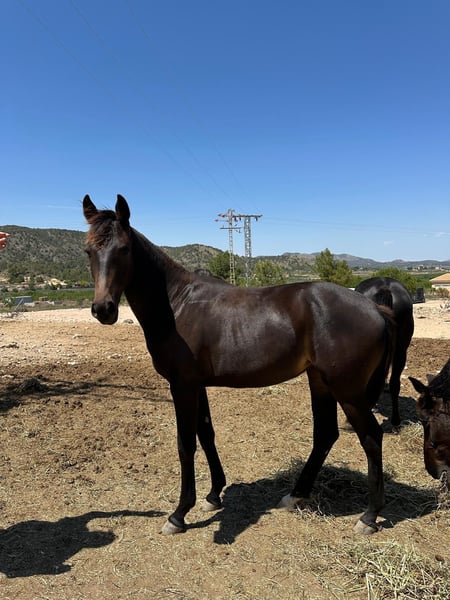 UMEA is een prachtige 1-jarige merrie met een indrukwekkende afstamming: Extreme U.S x Charmeur x Garibaldi. Deze combinatie brengt bewezen sportgenen, kracht, elegantie en werkwilligheid samen. Omdat UMEA bij ons op stal is geboren en vanaf dag één volledig door ons is opgegroeid, kennen we haar karakter, temperament en ontwikkeling door en door. Karakter & Temperament Vanaf het begin valt UMEA op door haar bijzonder aanhankelijke en mensgerichte karakter. Ze zoekt graag contact, is nieuwsgierig en staat altijd klaar om erbij te zijn wanneer er iets gebeurt. Ondanks haar jonge leeftijd toont ze al een opvallende dapperheid: nieuwe situaties pakt ze rustig en zelfverzekerd op. Daarbij blijft ze altijd zacht, lief en eerlijk in de omgang. Ze geniet van aandacht, poetsen en leert snel, wat haar een fijn paard maakt om mee te werken. Exterieur & Kleuren UMEA is mooi gebouwd, met een correcte bouw voor een toekomst in de sport. Ze heeft een sterke rug, een goed gebruik van haar lichaam en toont veel souplesse. Haar donkerbruine tot bijna zwarte vacht is opvallend mooi en geeft haar een chique uitstraling. Ze staat mooi in het rechthoeksmodel en ontwikkelt zich op een manier die passend is voor een modern dressuurpaard van dit kaliber. Beweging & Potentie In beweging laat UMEA nu al veel talent zien. Ze beschikt over: Drie ruime, correcte en elastische gangen Een bijzonder sterk en actief achterbeen Een natuurlijke balans en veer in haar beweging Een houding die aangeeft dat ze later makkelijk kan sluiten Alles wijst erop dat zij uit kan groeien tot een zeer interessant dressuurpaard voor de sport of fokkerij. Haar afstamming, gecombineerd met haar uitstraling en talent, maken haar een paard met veel toekomstperspectief. Kortom Ben je op zoek naar een jonge merrie die alles in zich heeft: een eerlijk en dapper karakter, sterke bewegingen, een indrukwekkende afstamming én veelbelovend talent voor de toekomst? Dan is UMEA zonder twijfel een ideale keuze.