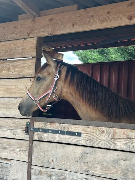 Magnifique pouliche pleins papiers KWPN de 2024 de couleur isabelle 😍 Elle a de très bonnes origines dressage: 🧬 Qandide x Franklin Elle tient sa couleur de son père qui est jeune étalon hanovrien de dressage cremollo par Quasi Gold (Quaterback) x Floriscount. Sa mère KWPN est par l’étalon de Grand Prix international Franklin et une lignée maternelle par Bon Bravour (Painted Black). Née en Hollande et actuellement située près de Lyon (69). ****************************************** Gorgeous 2024 KWPN filly, buckskin colored 😍 International dressage bloodlines: 🧬 Qandide x Franklin She owes her golden color to her adore who is a cremello dressage stallion by Quasi Gold (Quaterback) x Floriscount. Her dam is by the international Danish stallion Franklin, and a dam line by Bon Bravour (Painted Black). Born in Holland, she is currently located near Lyon, France.