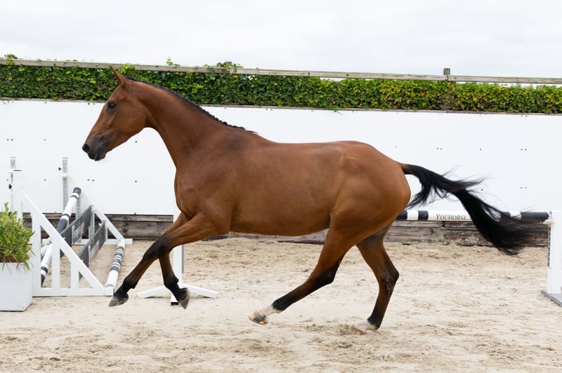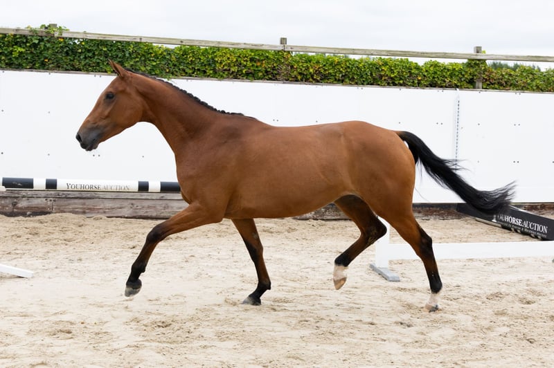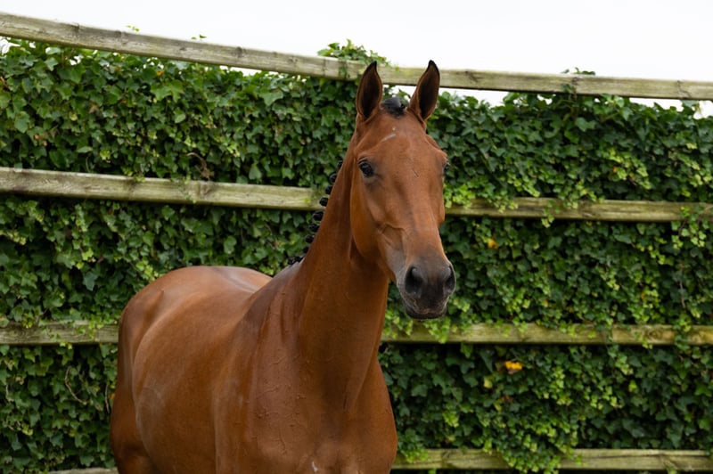 The three-year-old show jumper Dora immediately stands out as soon as she starts moving and jumping. She demonstrates a lot of talent and has refined bloodlines. She is saddle-trained. Her sire, Jaloubet K, made his debut last year at the age of ten in international 1.50m jumping competitions with The Jelcic (CRO). He is a half-brother to the 2011 World Cup final winner Taloubet Z (1.60m Grand Prix with Christian Ahlmann), Obadja (1.60m Grand Prix), and the stallion Big Star JR KZ (1.55m Grand Prix). Her dam, Beaudora, descends from Verdi TN x El Rosso x Zandigo.