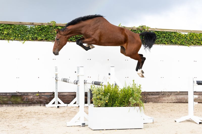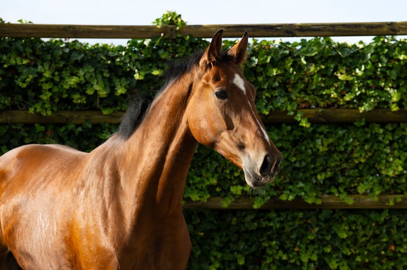 The four-year-old Roxette VE is a well-built mare showing promising caution over fences. Her seven-year-old half-brother Darco VE is now competing in 1.35m show jumping courses. Their sire, Jacquet-Go, was competed by Ruben Romp at an international level up to 1.45m. As a grandson of the 1.50m mare Ginea (dam of the 1.60m Grand Prix horses Whinny Jackson, Ness G Ninea, and Daddycool Go), he comes from an interesting pedigree. The dam, Ecapone, is a daughter of Al Capone (1.60m Grand Prix). She competed in 1.30m show jumping courses, as did her dam, Aminea (by Manhattan out of Iroko x Nimmerdor). Aminea produced four jumpers at 1.20–1.30m level and is half-sister to a 1.35m show jumper and a CCI1* eventing horse. This lineage traces back to the same foundation mare as sire Jacquet-Go.