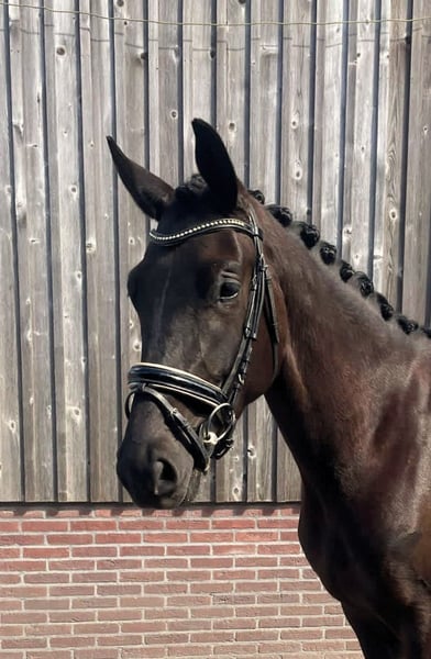 Bent u op zoek naar een echte eyecatcher voor de toekomst? met trots bieden wij deze zeer getalenteerde, 4-jarige zwart/bruine dressuurmerrie aan. Met haar indrukwekkende uitstraling, sterke afstamming en royale stokmaat van circa 1.70m heeft zij alles in huis om uit te groeien tot een succesvol sportpaard. Belangrijkste kenmerken: - Leeftijd: 4 jaar (geboren in 2022) - Geslacht: merrie - Kleur: Zwart - Stokmaat: ca. 1.70m - Stamboek: KWPN - Afstamming: Lowlands x Desperado Afstamming & potentie De vader is de bekende hengst Lowlands, geroemd om zijn fantastische instelling en drie bovengemiddelde basisgangen. Aan moederszijde vinden we de Grand-Prix hengst Desperado, wat zorgt voor extra 'go' souplesse en een sterk achterbeengebruik. De merrie heeft een moderne, aansprekende bouw en beweegt met veel lossigheid, balans en kwaliteit. Karakter & status Ze is vorig jaar zadelmak gemaakt en nu na een tijdje rust sinds +- 2 maanden weer opgepakt onder het zadel. Ze pakt dit fijn en werkwillig op, maar gezien haar jonge leeftijd en beperkte ervaring is ze (nog) niet geschikt voor de beginnende ruiter. In de omgang is ze eerlijk en sociaal naar andere paarden. Daarnaast is ze makkelijk bij de hoefsmid en vertrouwd met transport op de trailer. Gezondheid - Röntgenlogisch goedgekeurd voor de sport (inclusief hals en rug) - Vrij van (stal) gebreken - Herkeuren toegestaan op kosten koper Vraagprijs Op aanvraag (hogere prijsklasse) Contact Bij serieuze interesse kunt u contact opnemen voor meer informatie, foto's of video's. Naam: Esveld Locatie: Utrecht Telefoon: 06-21532617