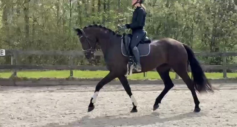 Sind Sie auf der Suche nach einem echten Blickfang für die Zukunft? Mit Stolz bieten wir diese äußerst talentierte, vierjährige Schwarzbraune Dressur-Stute an. Mit ihrer beeindruckenden Ausstrahlung, starken Abstammung und einer Stockmaß von ca. 1,70 m besitzt sie alles, um zu einem erfolgreichen Sportpferd heranzuwachsen. Wichtigste Merkmale: - Alter: 4 Jahre (geboren 2022) - Geschlecht: Stute - Farbe: Schwarz - Stockmaß: ca. 1,70 m - Zuchtbuch: KWPN - Abstammung: Lowlands x Desperado Abstammung & Potenzial Der Vater ist der bekannte Hengst Lowlands, der für seine fantastische Einstellung und drei überdurchschnittliche Grundgangarten hoch gelobt wird. Von der Mutterseite stammt der Grand-Prix-Hengst Desperado, was für zusätzliches „Go“, Flexibilität und einen starken Hinterbeineinsatz sorgt. Die Stute hat eine moderne, ansprechende Konstitution und bewegt sich mit viel Leichtigkeit, Balance und Qualität. Charakter & Status Sie wurde im letzten Jahr eingeritten und ist nach einer kurzen Pause seit etwa zwei Monaten wieder unter dem Sattel. Sie nimmt dies angenehm und arbeitswillig auf, doch aufgrund ihres jungen Alters und begrenzter Erfahrung ist sie (noch) nicht für den Anfänger geeignet. Im Umgang ist sie ehrlich und sozial gegenüber anderen Pferden. Außerdem ist sie leicht beim Hufschmied und vertraut mit Transport auf dem Anhänger. Gesundheit - Röntgenologisch sporttauglich (inklusive Hals- und Rückenaufnahmen) - Frei von (Hallen-)Gebrechen - Nachuntersuchung auf Kosten des Käufers möglich Preis Auf Anfrage (höhere Preisklasse) Kontakt Bei ernsthaftem Interesse können Sie sich für weitere Informationen, Fotos oder Videos gerne melden. Name: Esveld Standort: Utrecht Telefon: 06-21532617