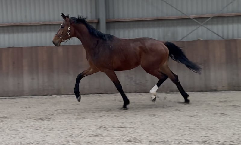 Regal KWPN dressage mare with an elegant build and abundant movement. This mare comes directly from her breeder. She is still green and untrained but learns quickly. She possesses a very interesting dressage pedigree. For inquiries, please call or WhatsApp. Phone: +31 (0) 643197337 or +31 (0) 648271956