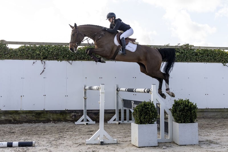 Snapchat is a long-lined sport horse known for his scope and exceptional jumping ability. A modern horse with high quality, light-footedness, and quickness off the ground. He is easy to ride, displays a good attitude, and combines this with a big heart and willingness to work. Over fences, he demonstrates significant scope and quality. He jumps with strong push, excellent overview, and ease. He appears to handle larger fences effortlessly and provides the rider with a special feeling. The rider describes it as: “You really feel like you’re flying over the jumps, with so much power and ease.” He is ready for further development and possesses all the qualities to progress to a higher level. A horse with power, attitude, and an outstanding jumping style. His sire, Pegase van ’t Ruytershof, competes at 1.55m level and comes from the renowned Comme Il Faut x Ratina Z lineage. His dam, Pilea, is a daughter of Lancelot (1.60m) and hails from a solid Dutch performance family. The damline has produced several sport horses: Gucci (1.45m) Axel (1.35m) Dot Com Z (1.35m) Multiple horses at 1.30m–1.45m level A proven family with a strong record of performance.