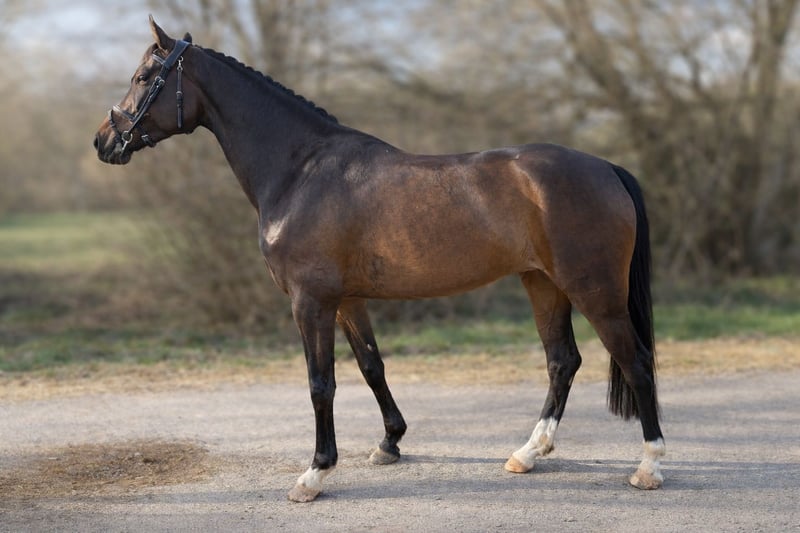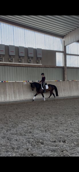 Rosa ist eine sehr elegante und hübsche Stute mit einer tollen Ausstrahlung. Die junge Stute zeigt sich ausgesprochen lieb im Umgang und ist sehr lernwillig. Unter dem Sattel lässt sie sich leicht in Anlehnung reiten und steht gut an den Hilfen. Ihre guten Grundgangarten machen sie angenehm zu sitzen und vielseitig einsetzbar. Auch beim Springen macht Rosa viel Freude. Sie absolviert einen Parcours brav und mit Übersicht und zeigt dabei eine schöne Technik. Zusätzlich geht sie brav ins Gelände, alleine und in der Gruppe und zeigt sich auch dort unkompliziert. Wer ein schönes Allround-Pferd sucht, das sich noch ganz nach den eigenen Vorstellungen weiter ausbilden lässt, findet in Rosa die richtige Partnerin. Sie gibt stets ihr Bestes und arbeitet motiviert mit ihrem Reiter zusammen. Aufgrund ihres jungen Alters ist Rosa nicht für Anfänger geeignet.