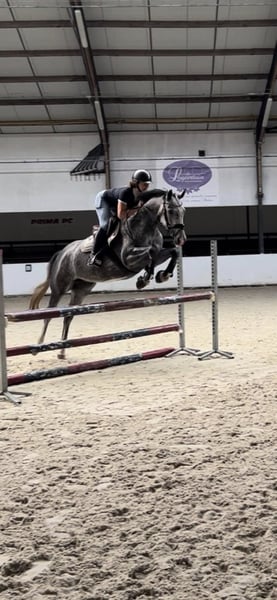 Sehr süßes, unkompliziertes und talentiertes Pferd. Als 3-Jährige direkt vom Züchter gekauft, stammt sie von einem Grand Prix-Dressurreiter und einem 1,35 m Springreiter ab. Sie hatte also den besten Start und eine hervorragende Ausbildung. Wir glauben, dass sie sehr gut als Hunter-/Equitation-Pferd geeignet ist, aber natürlich auch als Dressurpferd. - Aktuell auf M1-Niveau in der Dressur im Einsatz (Siegerin der regionalen Meisterschaftsqualifikation L2). Kennt Schritt-Pirouetten, Schulterherein, Travers, einfache und fliegende Wechsel, Halben Pass usw. - Mehrere Male bei Springturnieren über 80/90 cm gestartet. War bei Hunter-Kliniken und Ausritten. Sie ist nicht schreckhaft bei schwierigen Sprüngen. - Hat bereits viel Erfahrung für ihr Alter, Sie können sie selbst zu Turnieren mitnehmen. - Sie passt sich dem Reiter und den Anforderungen an. Möchten Sie einen auffälligen Trab? Das wird sie Ihnen geben. Möchten Sie sie in einem ruhigen Tempo, einfachen Trab/Galopp mit langen Zügeln reiten? Auch das ist für sie in Ordnung. Sie liebt es, in den Wald zu gehen. - Saubere Röntgenbilder, keine (Stall-)Vices, kein Stutenverhalten. - Standort im Norden der Niederlande - Sie muss noch nicht verkauft werden und wird nur in die besten Hände gegeben. - Ganze Geschichte bekannt. Ich habe auch ihre Halbschwester aus derselben Mutter gekauft, weil ich dieses Pferd so mochte.