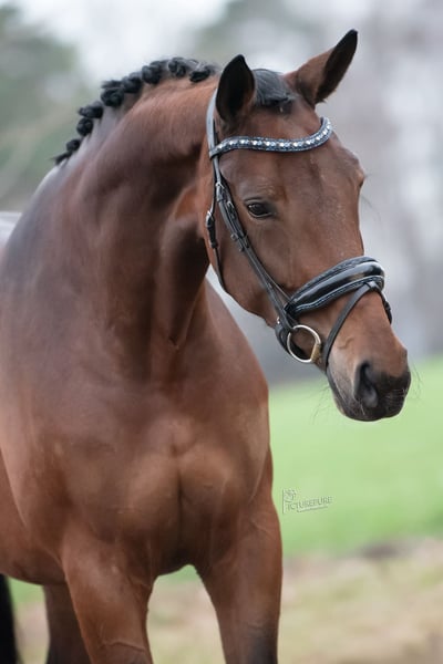 Stute Despacito x Benneton Dream ca. 173 cm Diese äußerst talentierte Stute verfügt über eine elegante Gangart und ein sehr gutes Hinterbein. Ein Pferd mit überdurchschnittlicher Qualität, sehr brav im Umgang und unter dem Sattel. Das Pferd ist gelassen und zeigt sich unter dem Sattel absolut unerschrocken. Keine Marotten einer Stute, lieb und freundlich auf der Stallgasse. Sie ist circa 174 cm groß und steht gerade auf den Hufen. Bereits war sie auf fremdem Gelände unterwegs, was sie sehr brav meistert. Auch im Wald zeigt sie sich brav. Ein sehr feines Pferd für jemanden, der in der Turnierpferdeklasse glänzen möchte! Das Pferd ist vollständig sporttauglich geprüft, inklusive Beinen, Rücken und Hals.