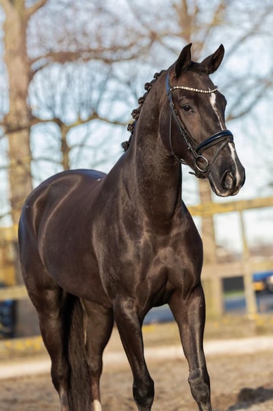 PRE meets KWPN with a Big Heart This 5-year-old mare (approximately 15.2 hh) combines the best of two worlds: Spanish calmness meets sportive openness. A dark chestnut with an honest expression, a calm temperament, and a character that immediately inspires trust. She is very well-behaved, balanced, and absolutely kid-friendly – a true E-Pony with top-quality conformation and movement. Whether in daily handling or under saddle: 👉 straightforward 👉 confident 👉 pleasantly calm Perfect for children, teenagers, or smaller adults seeking a safe, loving, and reliable horse.
