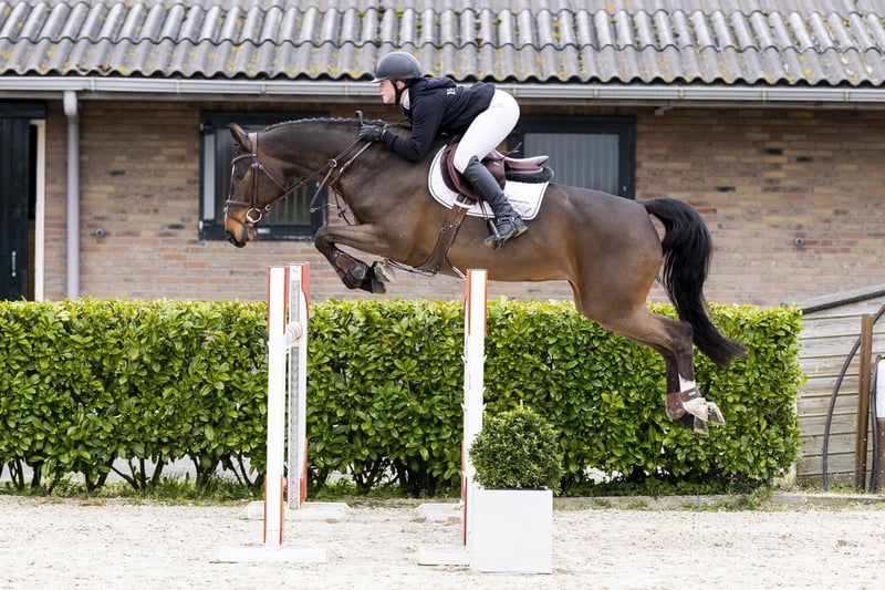 Papaya es una hermosa y sangre mare con un trote ligero y un modo de moverse muy agradable. Salta con mucha calidad, tiene una buena técnica y es cuidadosa en el salto. Es muy fácil de montar, colaboradora y tiene un carácter excelente. Un caballo que realiza todo con mucha facilidad y que se deja trabajar de manera cómoda por el jinete. Tiene experiencia en nivel 1,10 m. Como cuadra, tuvo un potrillo a los cuatro años y ahora lleva aproximadamente un año bajo la silla. Aún está algo verde, pero muestra mucho potencial y calidad para el futuro. Sin embargo, en el terreno de entrenamiento y al calentar a veces se asusta un poco por otros caballos. Esto requiere un poco de manejo y acostumbramiento al principio. Con un enfoque constante, esto se desarrollará de manera positiva. Es algo que se observa con más frecuencia en caballos que son sensibles en el salto y, con la habituación, generalmente mejora. El padre, L’Extreme BH, salta a nivel 1,35 m y es hijo del semental de Gran Premio Canturo (1,60 m). De esta línea también provienen Shou d’Ouilly (1,50 m) y Osiris d’Ouilly (1,55 m), lo que confirma su potencial. La madre, Billy Buttercup, saltó a nivel 1,40 m. La línea materna es muy fuerte y ha producido varios caballos de salto internacionales: Billy Congo (1,60 m, semental aprobado) Billy Orange (1,60 m) Billy Autumn (1,60 m) Billy Santorini (1,60 m) Billy Alpen (1,55 m) Billy Utah (1,45 m) Strides Foxy Lady (1,45 m) Billy Holly Blue (1,40 m) Billy Skipper (1,40 m) Billy Buttercup (1,40 m) Billy Rhodes (1,35 m) varios caballos en 1,30 m Una línea de sangre que ha demostrado sobradamente su valía en los niveles más altos.