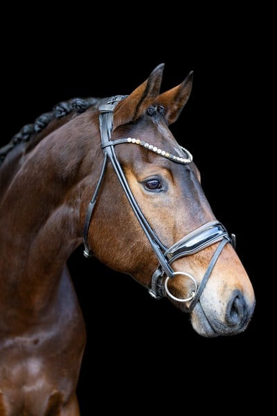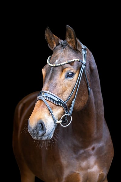 Deze zeer knappe bruine merrie overtuigt in alle opzichten door haar evenwicht, rijbaarheid en kwaliteit. Ze beschikt over drie zeer goede basisgangen en presenteert zich altijd aangenaam vooruitgaand, maar wel altijd gecontroleerd, eerlijk en geconcentreerd! Onder het zadel is ze absoluut rijvaardig, licht te zitten en geeft haar ruiter te allen tijde een goed gevoel. Ze laat zich niet snel uit haar evenwicht brengen, blijft helder in haar hoofd en toont een uitzonderlijk stabiel en betrouwbaar karakter. Precisieom die reden komt ze ook zeer goed in aanmerking voor minder ervaren ruiters of goed gereden jongeren. Zowel in omgang als onder het zadel is ze zeer mensgericht, vriendelijk en vertrouwenwekkend. Het is duidelijk dat ze zachtaardig behandeld is en tot nu toe geen negatieve ervaringen heeft opgedaan. Een paard dat meewerkt, vertrouwen schenkt en plezier toont in de gezamenlijke arbeid. Met haar moderne, aansprekende exterieur, een zeer goede instelling en haar bewegingskwaliteit is ze een gewild dressuurpaard dat vele mogelijkheden biedt – van ambitieuze amateur tot degelijke sportpartner. Ook voor de fokkerij is ze interessant: Ze komt uit een bloedlijn met Hotline en Vivaldi en beschikt daarmee over een hoogwaardige, bewezen dressuurafstamming, die haar op termijn ook voor de fokkerij aantrekkelijk maakt. Een veelzijdig, eerlijk en hoogwaardig dressuurpaard dat overtuigt door karakter, kwaliteit en betrouwbaarheid.