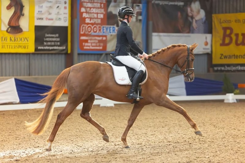 We bred this mare ourselves. Her sire is our own approved stallion, Kingsley Tarpania. This stallion has already been sold to Australia. Her dam, Hattrick, has competed in the Light Tour, and her half-sister, Palmspring, is also for sale. Two very different horses, but both are very sweet mares in terms of temperament. We only recently backed this mare under saddle. She recently competed in a show with a young rider of ours, and it went very well; she was extremely well-behaved. She has already participated in many competitions, often placing first in classes up to B, and is ready for L1. The horse moves with a very relaxed and easy way of going. X-rays are available upon request and serious interest, including views of the neck and back. These have been examined and approved by our veterinarian, and the report is available. Please note: 21% VAT is to be added!