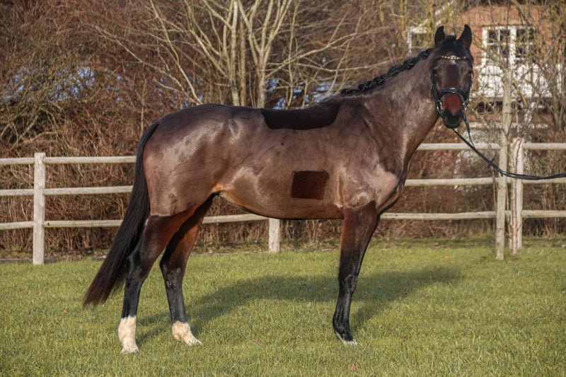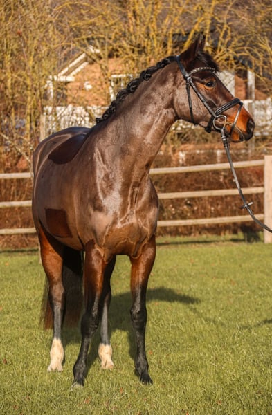 Esta yegua nacida en 2019 (Painted Black x Okeanos), actualmente de 1,53 cm, es un sueño para toda dama o adolescente que quiera tener un caballo con calidad, que sea muy fino y sin fuerza para montar. "Olivia" convence con sus 3 buenas, incluso GGA y una gran manejabilidad. Equipada con suficiente Go y una gran actitud de trabajo, esta yegua es simplemente divertida. Sin complicaciones e intrépido en el uso diario. Herrero, tijeras, paseos a caballo,... No hay problema. Un caballo del que enamorarse que trae alegría todos los días. Además, también es una verdadera joya para la cría. Paternidad: Dam Rumirell Rouge es la nieta de la yegua probablemente más importante de Oldenburg Rumirell von Grundstein II x Akzent II de la tribu Rudilore. De ella vienen seis hijos con licencia, todos hermanos de pleno derecho del apareamiento con el semental de sello de Oldenburg Rohdiamant, entre ellos Rubin Royal OLD, atléticamente exitoso y actualmente clasificado cuarto de los mejores caballos de doma del mundo (WBFSH) Versiber, Blue Hors Romanov y Blue Hors Rockefeller, por nombrar solo algunos. Rumirell transmite un ser único: sensibilidad, inteligencia y motivación Paternidad: Sire Painted Black, hijo de la leyenda del padre Gribaldi, ya era conspicuo como un joven semental en competiciones internacionales de caballos jóvenes. Fue ganador reserva en el Campeonato Mundial de Caballos de Doma Joven y ganador del Gran Premio de Suecia en 2005. En 2008 logró un magnífico 3er lugar en la final de la Copa del Mundo en Las Vegas y más tarde compitió en los Juegos Olímpicos de 2012 en Londres y los Juegos Ecuestres Mundiales en Caen. Para obtener más información, póngase en contacto con nosotros por teléfono