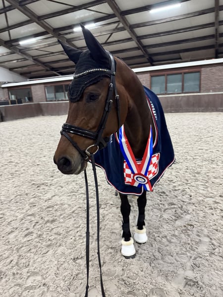 Orissa – 6-year-old KWPN mare with a top character and impressive quality A horse that enchants you from the very first moment – Orissa is the perfect example of this. This 6-year-old KWPN mare combines exceptional quality with a golden character and is ready to shine in the sport. ✨ Character Orissa is gentle, affectionate, and incredibly pleasant to handle. She is not only a talented sport horse but also a true cuddle buddy who wins everyone's heart. She has excellent dedication to work with a lot of eagerness to move. Health and conformation • Correct and harmonious build: strong back, elegant neck, correct legs • In excellent physical condition Sport achievements • Brabant reserve champion indoor class B 2024 • Indoor KNHS championship 2024 class B 4th place • Brabant champion indoor class M2 2025 Details • Name: Orissa • Gender: Mare • Age: 6 years • Height: 1.68 m • Pedigree: Dreamboy x Sunny Boy x Ferro • Level: Z-classified • Studbook: KWPN