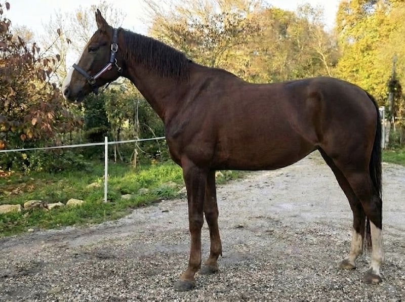 Orange Flair is een prachtige merrie, afkomstig uit de combinatie Totilas x Florencio x Krack C. Ze heeft een harmonieus model met veel formaat en beschikt over drie mooie, luchtige gangen. Ze werd op 3-jarige leeftijd Kampioen in de zuidelijke regio tijdens de KWPN-merriekeuring in Nederland. Ze is zeer prettig in de omgang en erg zacht in de verzorging. Ze kent de stapmolen en gaat elke dag naar de paddock. Ze is op 3-jarige leeftijd ingereden maar heeft weinig gewerkt, waardoor ze nog vrij groen is. Ze kent echter al schouderbinnenwaarts, appuyementen en travers in stap en draf. In galop beheerst ze stap-galop en galop-stap overgangen. Momenteel werken we aan het contra-galop. Ze gaat zowel alleen als in gezelschap op buitenrit. Een veelbelovende merrie voor iemand die de tijd wil nemen om haar correct op te leiden. Orange Flair is a stunning mare from the combination Totilas x Florencio x Krack C. She has a harmonious conformation with good height and three lovely, airy gaits. At 3 years old, she was Champion in the southern region during the KWPN mare classification in the Netherlands. She is very pleasant to handle and extremely gentle in her daily care. She is familiar with the walker and goes to the paddock every day. She was started under saddle as a 3-year-old but did very little work during her first years, so she is still quite green. However, she already knows shoulder-in, leg yields, and haunches-in at walk and trot. In canter, she can perform walk–canter and canter–walk transitions, and we are currently working on counter-canter. She hacks out both alone and in company. A promising mare for someone willing to take the time to develop her correctly. Orange Flair est une magnifique jument issue de l'accouplement entre Totilas x Florencio x Krack C. Elle a un modèle harmonieux avec de la taille et possède 3 jolies allures aériennes. Elle a été Championne à 3 ans dans la région sud lors du classement des juments KWPN en Hollande. Elle est très agréable à manipuler et très douce aux soins. Elle connaît le marcheur et va tous les jours au paddock. Elle a été débourrée à l’âge de trois ans, mais a très peu travaillé durant ses premières années, ce qui fait qu’elle est encore assez verte. Cependant, elle connaît déjà l’épaule en dedans, les cessions à la jambe et le travers au pas et au trot. Au galop, elle sait faire les pas-galop/galop-pas. Nous travaillons actuellement sur le contre galop. Elle part en balade seule ou accompagnée. Une jument prometteuse pour qui saura prendre le temps de la former. Orange Flair ist eine wunderschöne Stute aus der Anpaarung Totilas x Florencio x Krack C. Sie hat ein harmonisches Exterieur mit viel Größe und verfügt über drei schöne, leichtfüßige Grundgangarten. Mit 3 Jahren wurde sie Champion in der südlichen Region bei der KWPN-Stuteneintragung in den Niederlanden. Sie ist sehr angenehm im Umgang und ausgesprochen sanft in der Pflege. Sie kennt die Führanlage und geht täglich auf die Weide/Paddock. Sie wurde im Alter von drei Jahren angeritten, hat in den ersten Jahren jedoch nur wenig gearbeitet, weshalb sie noch recht grün ist. Dennoch beherrscht sie bereits Schulterherein, Schenkelweichen und Travers im Schritt und Trab. Im Galopp kann sie Schritt-Galopp und Galopp-Schritt Übergänge. Zurzeit arbeiten wir am Kontergalopp. Sie geht alleine oder in Begleitung ins Gelände. Eine vielversprechende Stute für jemanden, die/der sich die Zeit nimmt, sie sorgfältig auszubilden.
