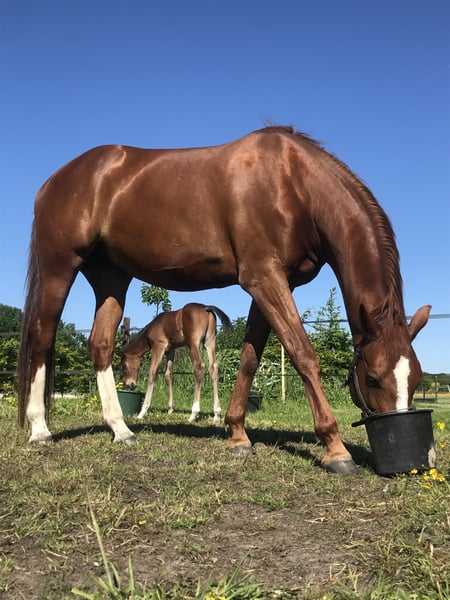 For sale: KWPN mare (2018) This stunning KWPN mare is a true gem for horse enthusiasts seeking a versatile and well-bred horse. Born in 2018, she stands an impressive 17.4 hh and exudes strength and elegance. As a chestnut mare with a striking presence, she has a well-balanced, rectangular conformation with a solid foundation. She possesses a good walk, a trot with plenty of impulsion and power, and a sufficient canter. This well-developed mare is currently ready for further training; she is saddle-trained but has not been extensively ridden. She is highly blooded and requires a clear, consistent rider. We have bred her ourselves and currently have a two-year-old colt by her, and she passes her quality on to her foal. A mare with plenty of size and quality, she has no physical limitations and can be ridden. Our recommendation is for breeding purposes due to her temperament. She is affectionate and friendly when handled but can become tense outside. If you are looking for a high-quality mare with a beautiful size, please feel free to contact us for more information or to arrange a viewing.