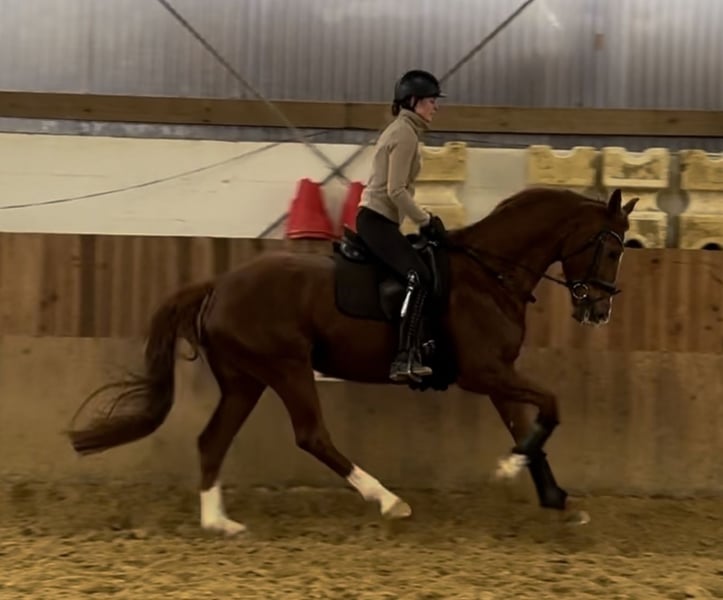 Absolutes Traumpferd Mara ist eine 2017 geborene KWPN Stute abstammend von Chippendale x Uphill. Durch ihre Größe von 165 cm ist sie ein hervorragendes Mädchenpferd. Sie sucht einen Reiter mit dem nötigen Feingefühl für sensible Pferde. Mara hat wunderbare, reele GGA. Besonders hervorzuheben, ist ihr gutes hinterbein im Galopp. Sie ist nicht umweltorientiert und auch in fremder Umgebung immer bei ihrem Reiter. Zudem geht sie top auf den Anhänger und ist auch sonst sehr gut erzogen. Im Umgang ist sie sehr Menschenbezogen und eine ruhige Seele. Mara hat einen vollständigen TÜV und ist komplett geimpft. Zudem ist sie frisch beschlagen. Ein Video ist vorhanden. Mara ist ganz brav, allerdings nicht für Anfänger geeignet, da sie nach Fohlenpause erst wieder angeschoben werden muss.