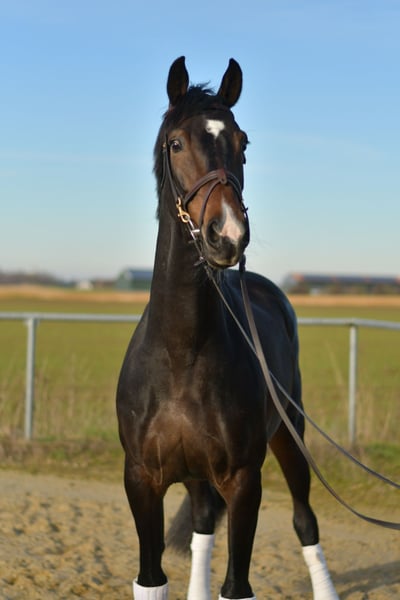 Discover our stunning dark bay KWPN mare born in 2017 – a true gem that will win your heart instantly! With an impressive height of approximately 16.1 hh and a compact build, she is not only a striking eye-catcher but also an ideal choice for riders transitioning from other disciplines. Her three beautiful basic gaits are the result of natural talent and training, making her a perfect partner for both beginners and advanced riders. This mare has a big heart and is incredibly comfortable to ride, providing pure enjoyment both in the saddle and during ground work. Her sensitive and affectionate nature makes her the perfect cuddle horse, always wanting to be close to her handler. She is not only a valuable addition to your stable but also a loyal companion. ### **Special Offer:** Secure a **5% discount** on the purchase price with immediate pickup! ### **Test Ride Opportunity:** Take advantage of the chance to test our horse for one week! This trial period can be supervised by experienced trainers. You will have the opportunity to combine riding lessons and testing sessions. Please note that a trial fee applies, which is not deducted from the purchase price. ### **Trial Riding:** Would you like to meet the mare in person? We are happy to arrange a viewing and trial ride. The cost for a pre-ride or trial session is €30 per person. Don’t hesitate to contact us for more information or to schedule an appointment. You won’t want to miss this unique opportunity!