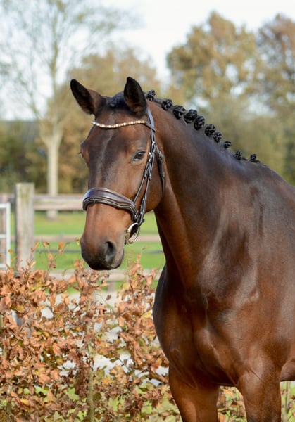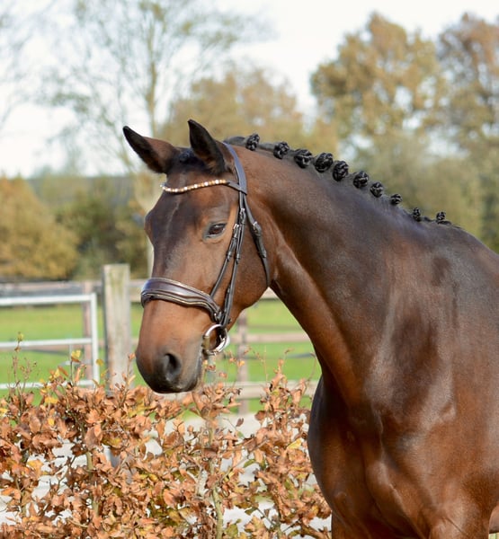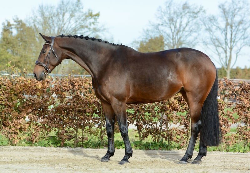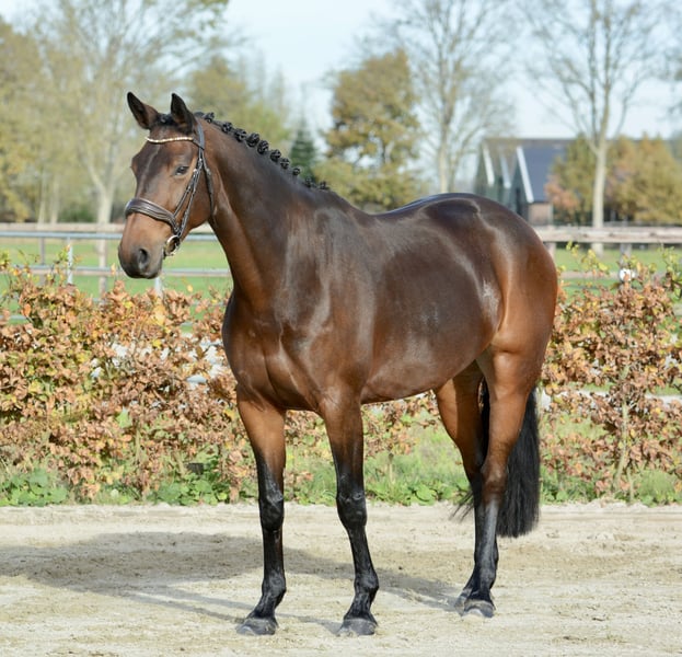 Micieni E.K.: Beautiful, versatile 8-year-old show jumper with a sweet and gentle temperament. Mare Dam line: Douglas x Marlon Born in 2017 (8 years old) Height: 1.67 m (16.1 hh) Color: Dark bay Radiographically approved, including back and neck, as of October 30, 2025 Ideal horse for transitioning from pony to full-sized horse or for an amateur rider who wants to enjoy riding. Micieni is a real eye-catcher and has an incredibly friendly character. She is well-behaved under saddle and always eager to do her best for you. Regularly taken to the forest and the beach. She finds roadside riding a bit stressful. Competition experience in the 1.00 m class and L2 dressage, both with winning points. Currently, she is jumping a 1.10 m course at home and is being trained towards 1.20 m level. Micieni prefers to be in a small, calm stable where she can at least spend part of the day outside. She is being sold on behalf of the owners due to their studies and work commitments. For more information, visit our website www.stalkampinga.nl or contact us directly. We are happy to help you find a suitable horse!
