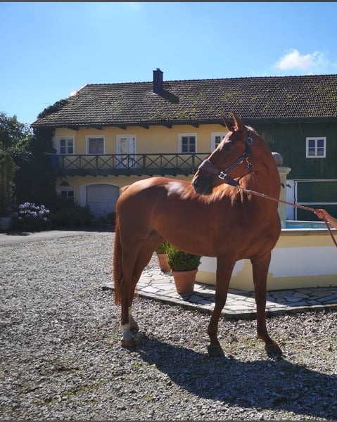 Zum Verkauf steht hier eine ganz tolle Stute! Aufgrund Veränderungen im Pensionstall überlege ich meine 9 jährige KWPN Stute zum Verkauf anzubieten. Es ist kein Not Verkauf und die Stute wird nur an Bestplatz abgegeben! Es wäre auch ein zur Verfügung stellen als Zuchtstute denkbar. Gerne auch ab März erst. Die Stute wurde in Karpfham geehrt als Reservesiegerstute. Tolle Bewegungen u super Abstammung. Leider hat sie KS Befunde die sie 3 jährig nicht hatte und vor drei Jahren auch Probleme mit Hufgelenk. Ich gehe leider davon aus, dass sie mal einen schweren Sturz auf der Weide hatte. Beim Kauf dreijährig Tüv o. B. Im Umgang liebstes Schmusepferd und auch beim Reiten sehr brav, aber kein Selbstläufer. Nicht Anfänger geeignet! Im Gelände mit Zweitpferd absolut sicher, alleine braucht sie klare Ansage u Vertrauen und bei bekannten Wegen geht sie auch da sehr brav. Autos, Traktoren kein Problem. Geht allein in den Anhänger. Schmiedefrom. Vierfach beschlagen u vorne benötigt sie Lederplatte mit einfacher Hanffüllung. Seit dem keinerlei Probleme mit Hufgelenk. Wurde in Klinik behandelt weiteres per PN. (drei Jahre lahmfrei) Ein mehrmaliges kennenlernen erwünscht. Reiter Nivea mind A. Sie wird aktuell voll geritten! Sattel der erst vor ein paar Wochen gekauft wurde, wäre gegen Aufpreis dabei (seit dem keinerlei Probleme mit Rücken) weiters gerne im persönlichen Gespräch. Keine Turnier Vorstellung weil ich da kein Interesse hatte. Eintragung vorhanden. Keine Turnierpfeimpfung aber regelmäßig Tetanus und Influenza. PSSM negativ gestet! Auch Op Versicherung die übernommen werden könnte. (R&V premium) Wie gesagt sie geht nur an Bestplatz! Weitere Videos auf Anfrage verfügbar Sämtliches Zubehör natürlich vorhanden und Preis VB. Es geht mir nichts ums Geld. Will einfach einen schönen Platz für sie finden