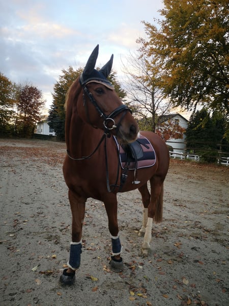 For sale is a wonderful mare! Due to changes at my retirement stable, I am considering offering my 9-year-old KWPN mare. This is not an emergency sale, and she will only be sold to a suitable, experienced rider. She could also be available as a broodmare. Preferably, she would be sold starting from March. The mare was honored in Karpfham as Reserve Champion Mare. She has excellent movement and a superb pedigree. Unfortunately, she has some previous findings from her vet check that she did not have at age three, and three years ago, she also had issues with her hock joint. I suspect she may have had a serious fall on the pasture at some point. She was health-checked and certified healthy at age three, with no issues since then. In handling, she is a very affectionate and cuddly horse and also very well-behaved under saddle, though not entirely beginner-friendly. She is absolutely safe in the field when ridden with a second horse, but requires clear commands and trust when ridden alone. She is very well-behaved on familiar routes and handles cars and tractors without problems. She can be loaded into the trailer alone and is farrier-friendly. She is four times shod, with front needing a leather pad with simple hemp filling. Since then, she has had no issues with her hock joint. She was treated at a clinic; further details available via private message. (Lame-free for three years.) A trial ride and getting to know her better are highly recommended. Rider should have at least level A riding skills. She is currently being ridden regularly! A saddle purchased just a few weeks ago can be included for an additional fee (no back issues since then). Further details can be discussed in person. She is not intended for competition, as I have no interest in that. Registration papers are available. No vaccination for competition purposes, but she is regularly vaccinated against tetanus and influenza. She tested negative for PSSM. An insurance policy (R&V Premium) could be transferred. As mentioned, she is only sold to the best possible home! Additional videos available upon request. All tack and accessories are included and negotiable. I am not primarily motivated by money; I just want to find her a good and loving home.